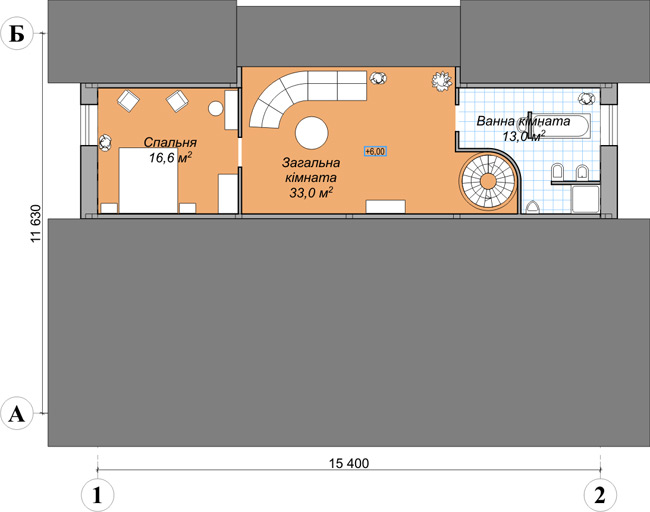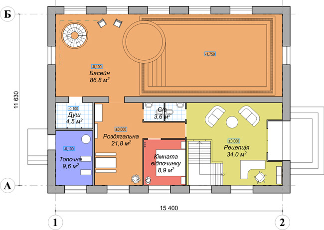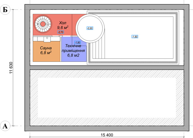 Общая площадь подземного этажа - 86,4 м² |